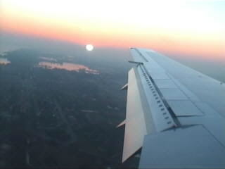 Nach einem Flug durch die Nacht geht auch in den Niederlanden mal die Sonne auf, obwohl die ja eigentlich im Westen sind, wo die Sonne ja bekanntlich untergeht...
